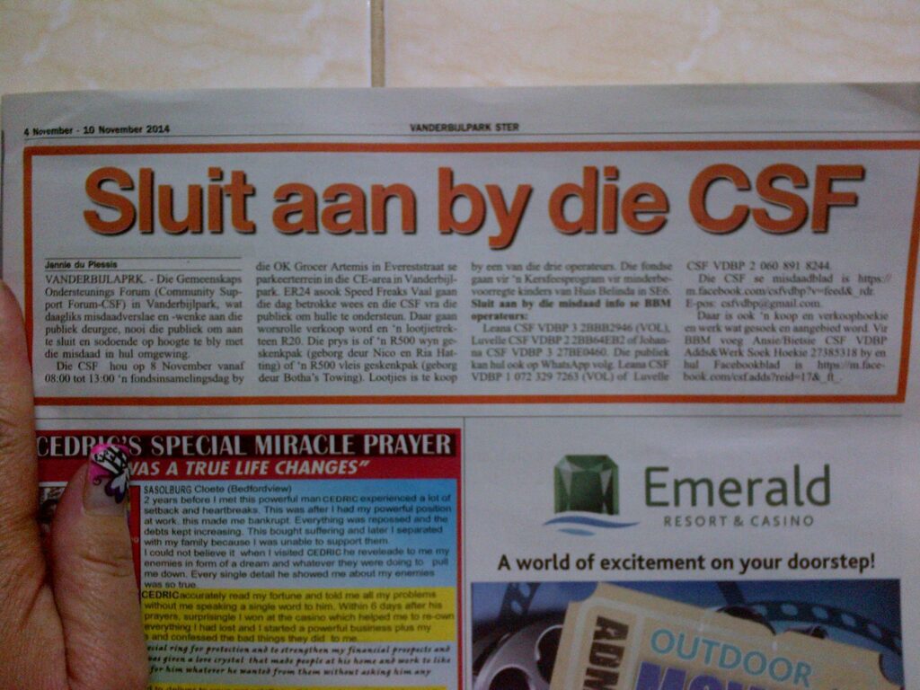 test donationCSF BEJAARDE KERSFEES PROJEKRIV Frans MorganRIV Zonica Hattingh en baba EvanCSF SANTA SHOEBOX 2021Begrafnis Reelings van Johanna StrydomRus in Vrede Johanna Strydom – 18 September 2021Tribute to K9 Simba and Shaka R.I.P. CSF – Community Support ForumThank you Firefighters