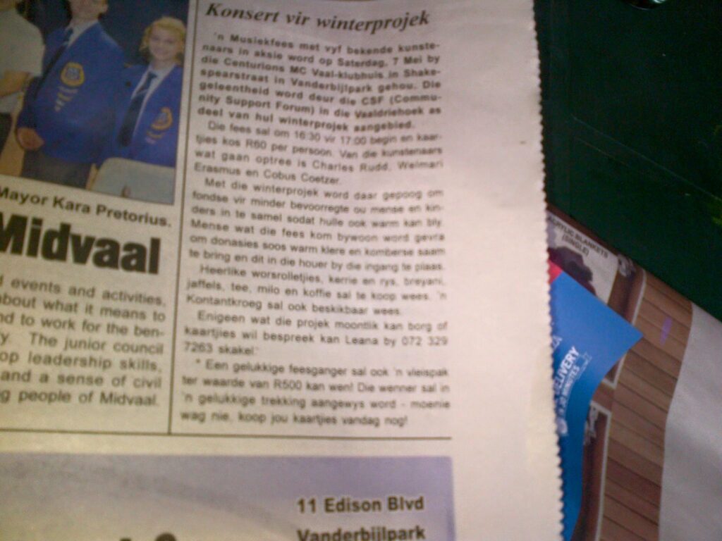Vaalweekblad, Ster and IFM usually helps to advertise our events and products.
